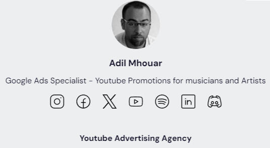 Servicios de Marketing en YouTube para Artistas y Agencias¡Impulsa tu presencia en YouTube y promociona tus éxitos musicales con nuestras efectivas campañas publicitarias! Soy Adil Mhouar, experto en Google Ads desde 2012, y en Diyafads nos especializamos en crear estrategias personalizadas para aumentar las visualizaciones de tus videos seleccionados.### Nuestros Planes de Inversión Publicitaria1. Plan Básico - 50 Euros
